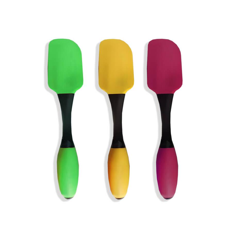 Робоча поверхня лопатки виконана з силікону, який абсолютно нешкідливий для здоров'я, не вступає в жодні реакції з продуктами харчування, а також не залишає подряпин на посуді з антипригарним покриттям. Має зручну прозору ручку із нейлону.