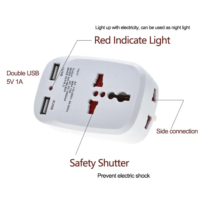 Мережевий розгалужувач трійник Travel Adaptor 823 дозволить одночасно підключити телефон, планшет, будь-які інші пристрої. А також додатково скористатися двома USB роз'ємами.