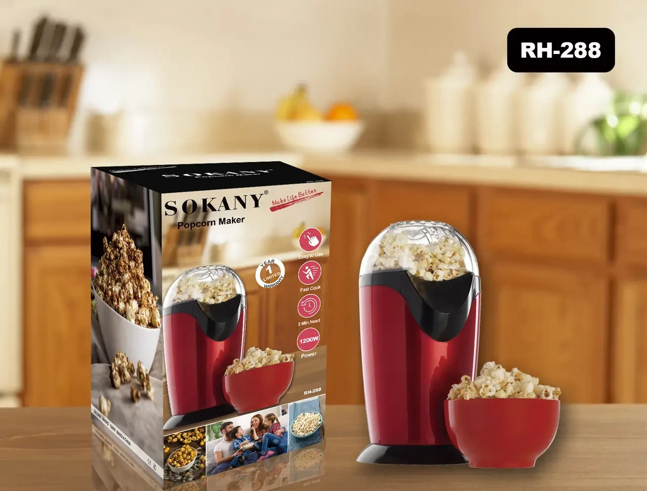 Sokany RH-288 - приготувавши за допомогою нього попкорн без масла, Ви гарантуєте здорову розвагу для всієї родини. Ви можете розраховувати на його потужність 1200 Вт, щоб приготувати попкорн за лічені хвилини та на нековзну основу для додаткової стійкості під час використання.