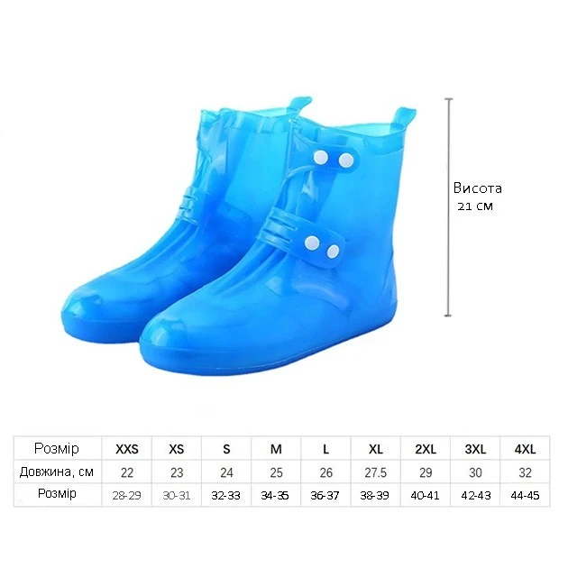 Розмір водонепроникних бахілів має бути на 3-4 розміри більшим за розмір взуття для зручного користування.