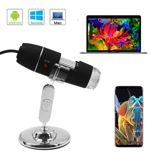 Usb цифровий мікроскоп дає змогу отримувати зображення і зберігати знімки та відео, легко під'єднується до будь-якого комп'ютера або ноутбука через стандартний порт USB. Його можна використовувати в домашніх умовах, наприклад для вивчення комах, ювелірних каменів, структури тканин і будови будь-яких інших матеріалів. Також його можна використовувати в лабораторіях, навчальних аудиторіях, під час польових досліджень, розробці мікросхем і ювелірній справі. Також можливе під'єднання до пристроїв на Android за допомогою перехідників TypeC і MicroUSB.