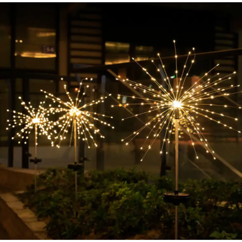 Садовий світильник «Фейєрверк» створить на прибудинковій території дивовижне видовище розлітається сяйва вогнями салюту. Вдень його непомітно, а вночі виглядає феєрично красиво! Якщо ви шукаєте оригінальні декоративні світлодіодні інсталяції для свого саду, парку, виділення периметра басейну, зони літнього майданчика кафе, вам варто купити Газонний ліхтар «Фейерверк» з живленням від сонячних батарей.