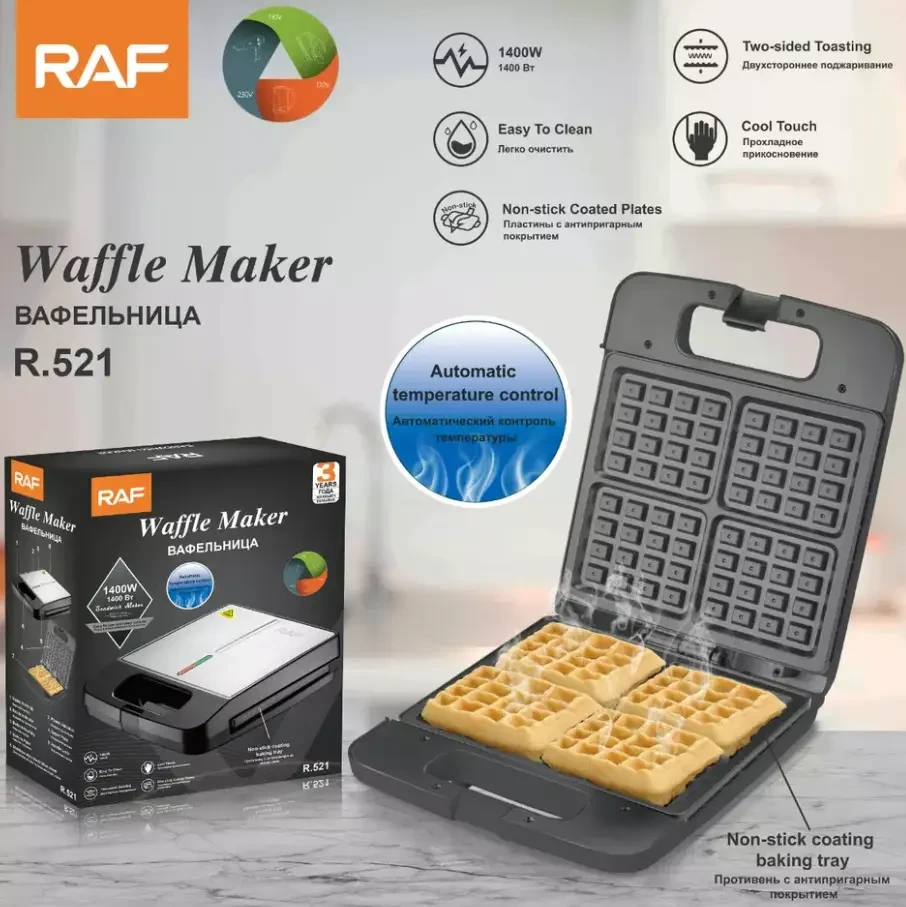 За допомогою вафельниці RAF R.521 ви приготуєте смачні бельгійські вафлі на сніданок. Оснащена пластинами з антипригарним покриттям. Вафлі в ній не підгоряють та не прилипають. Індикатор живлення та готовності дозволяють стежити за часом приготування страви.
