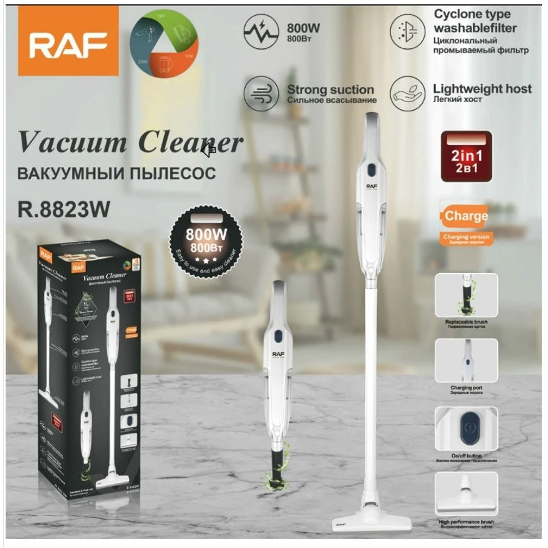 Пилосос акумуляторний RAF 8823 800W колба 1л. Висувна металева трубка для регулювання висоти.