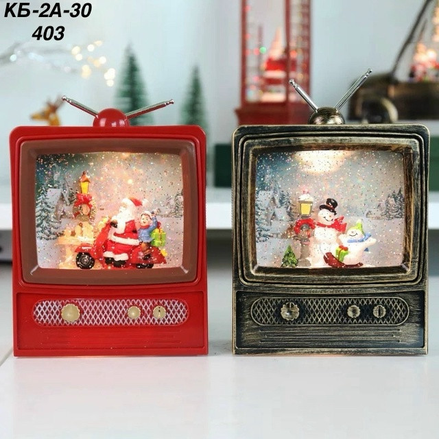 Новорічний світлодіодний музичний LED ліхтар Телевізор зі снігом USB+батарейки 23х16 см