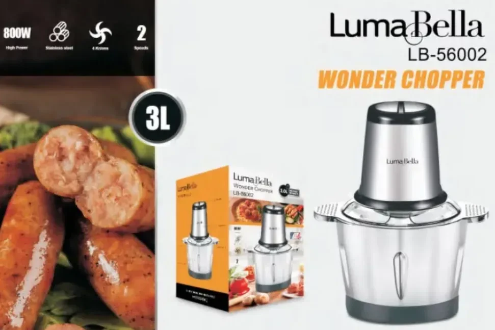 Подрібнювач LumaBella LB-56002 (800 Вт, 3 л) — це надійний кухонний помічник із металевою чашею на 3 літри та гострими лезами з нержавіючої сталі, які забезпечують швидке та ефективне подрібнення. Підходить для приготування фаршу, пюре, соусів, салатів та інших домашніх страв.