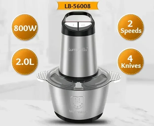 Подрібнювач LumaBella LB-56008 (800 Вт, 2 л) — потужний і надійний прилад для кухні. Завдяки металевої чаші та міцним лезам, пристрій ефективно справляється з подрібненням овочів, зелені, фруктів, м'яса та навіть яєць.