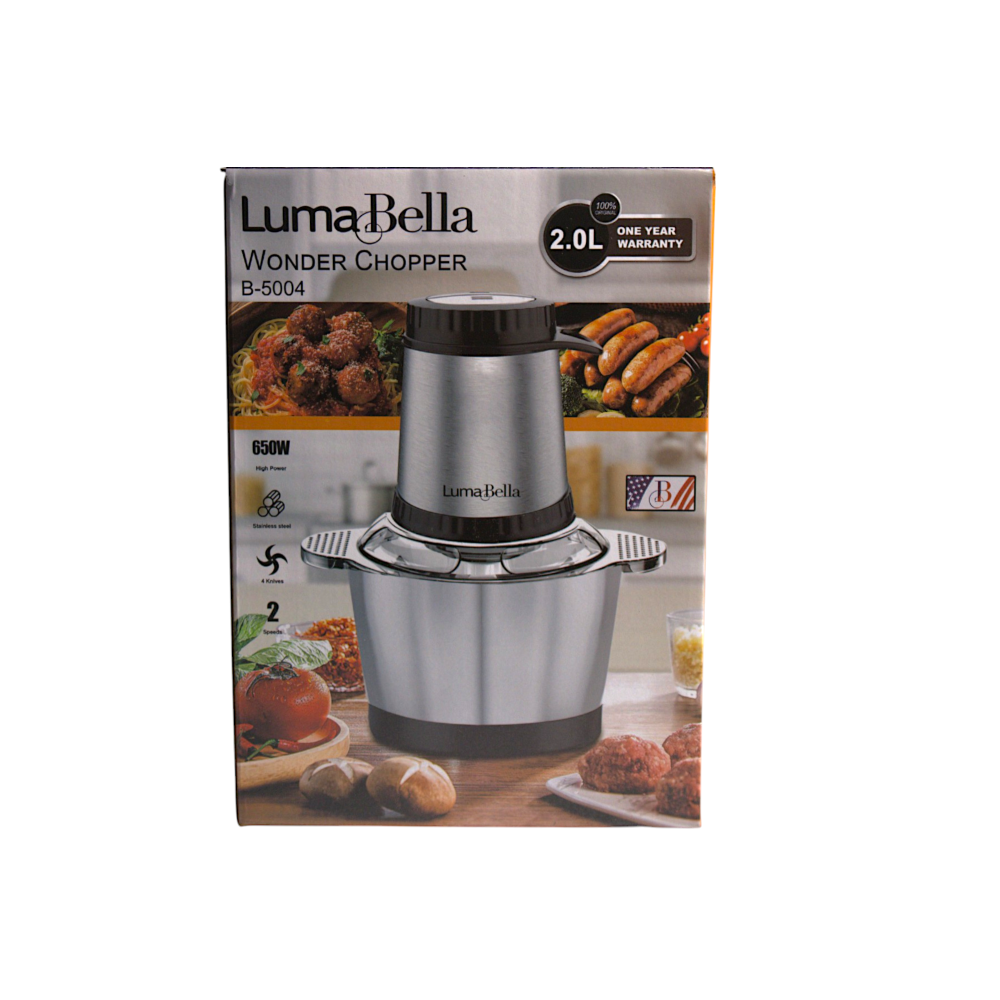 Подрібнювач продуктів LumaBella B-5004 (650 Вт, 2 л) — це компактний і потужний чопер для домашнього використання, що ідеально підходить для подрібнення, збивання та шаткування. З легкістю перетворює овочі, фрукти та навіть м'ясо на потрібну консистенцію лише за кілька секунд.