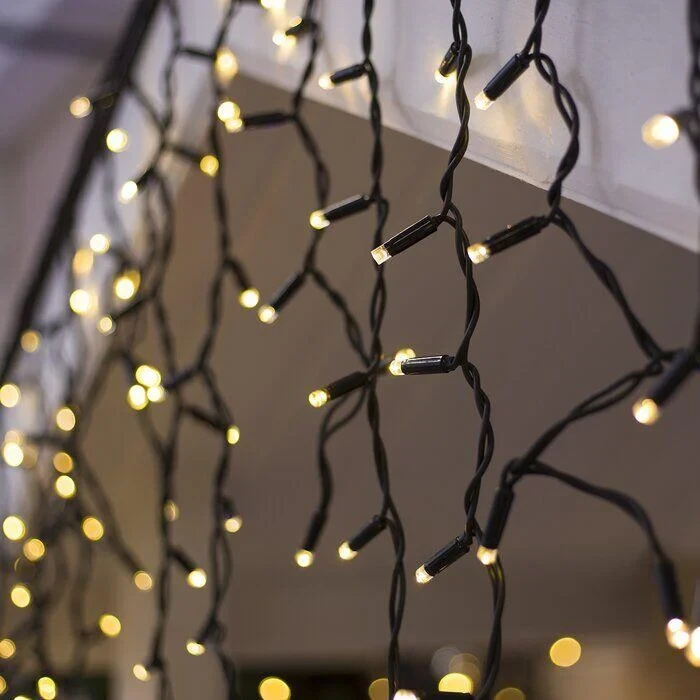 Новорічна вулична гірлянда Бахрома 3 х 0.8 м чорний дріт теплий білий від мережі Jb