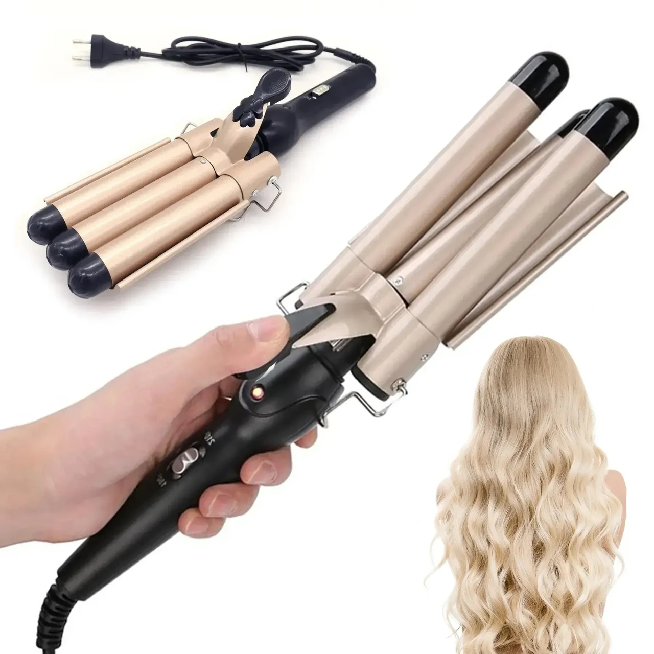 Кожна представниця прекрасної статі може мати хвилясте волосся. За допомогою потрійного нагрівального елемента створити зачіску швидко стало можливим, без особливого клопоту і водночас максимально щадним способом. Плойка дає змогу створювати кілька варіантів хвиль — від S-подібних до хвиль, з ледь помітними округленням, надаючи особливого шарму, підкреслюючи індивідуальність і елегантний тонкий смак.